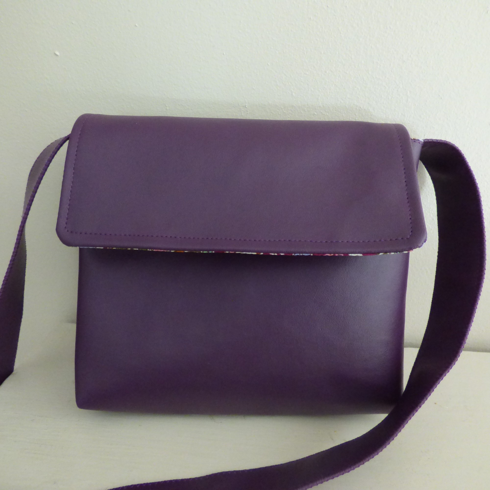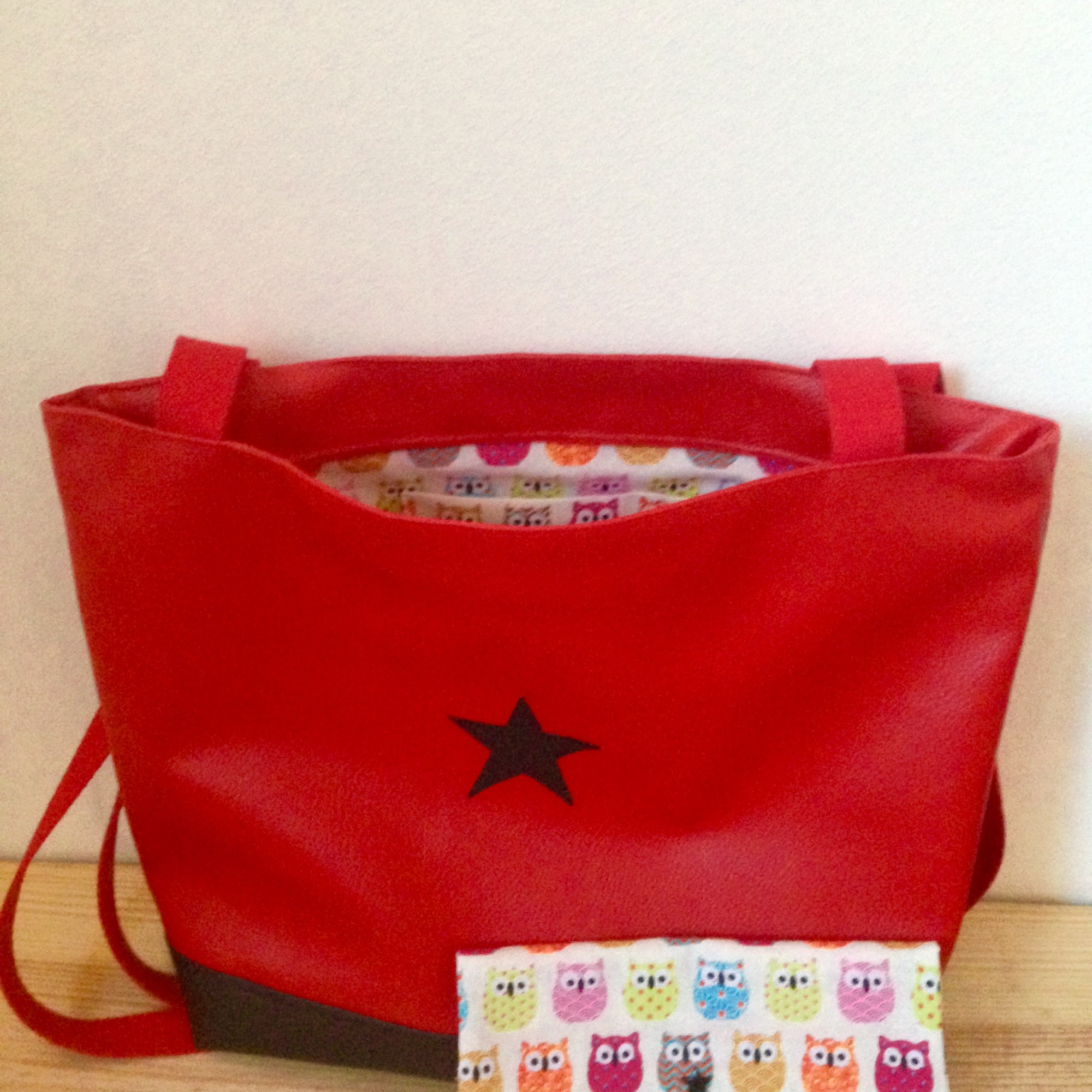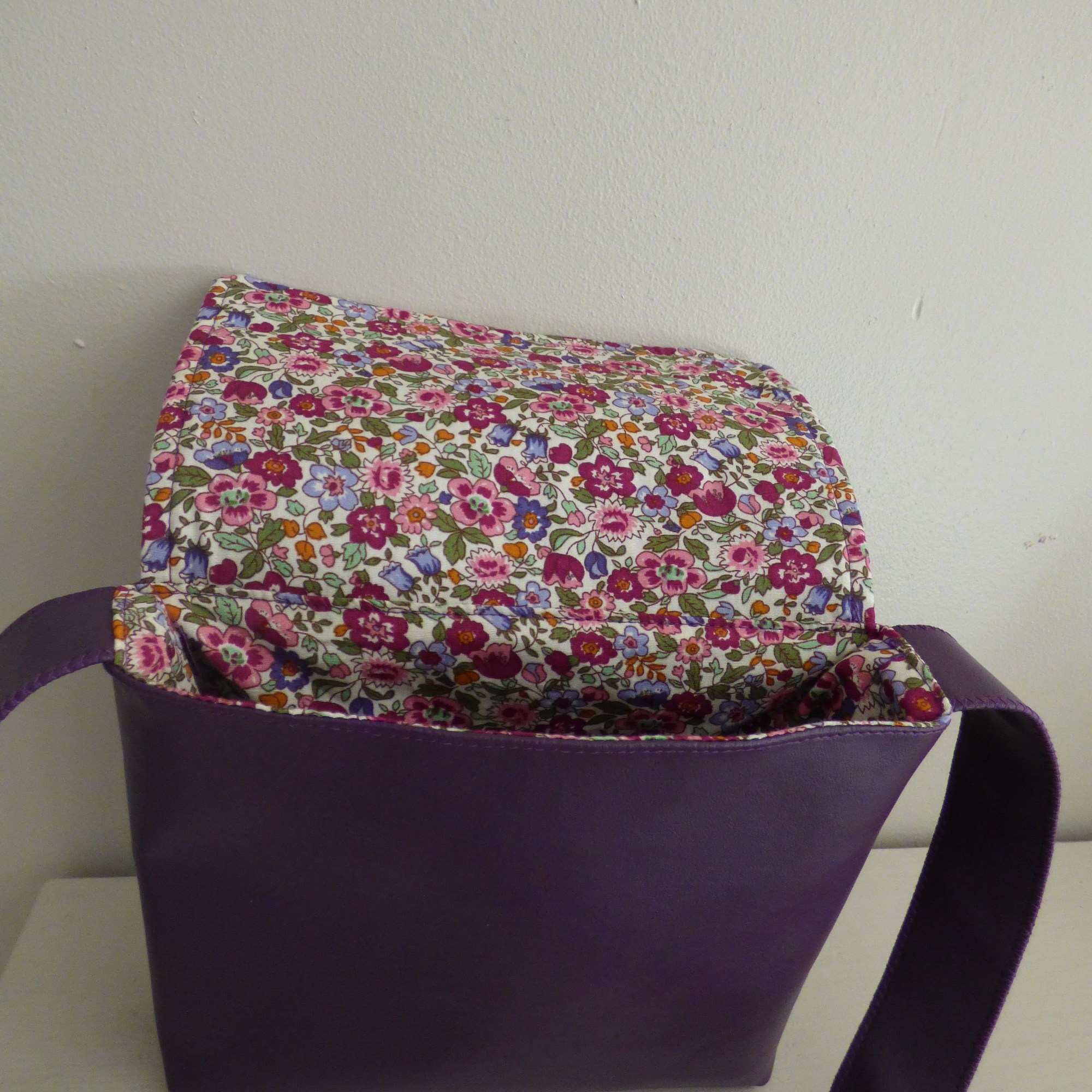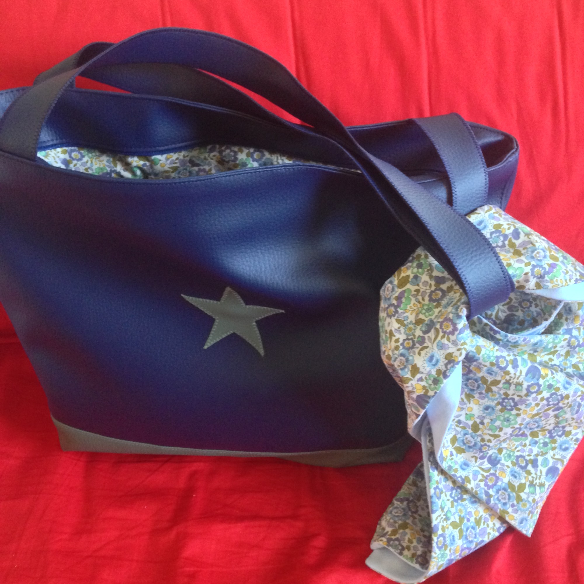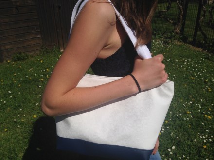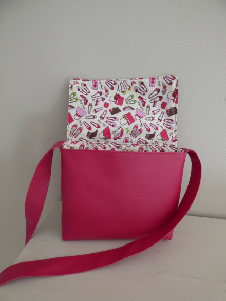 Sac en simili cuir, doublé de tissus.