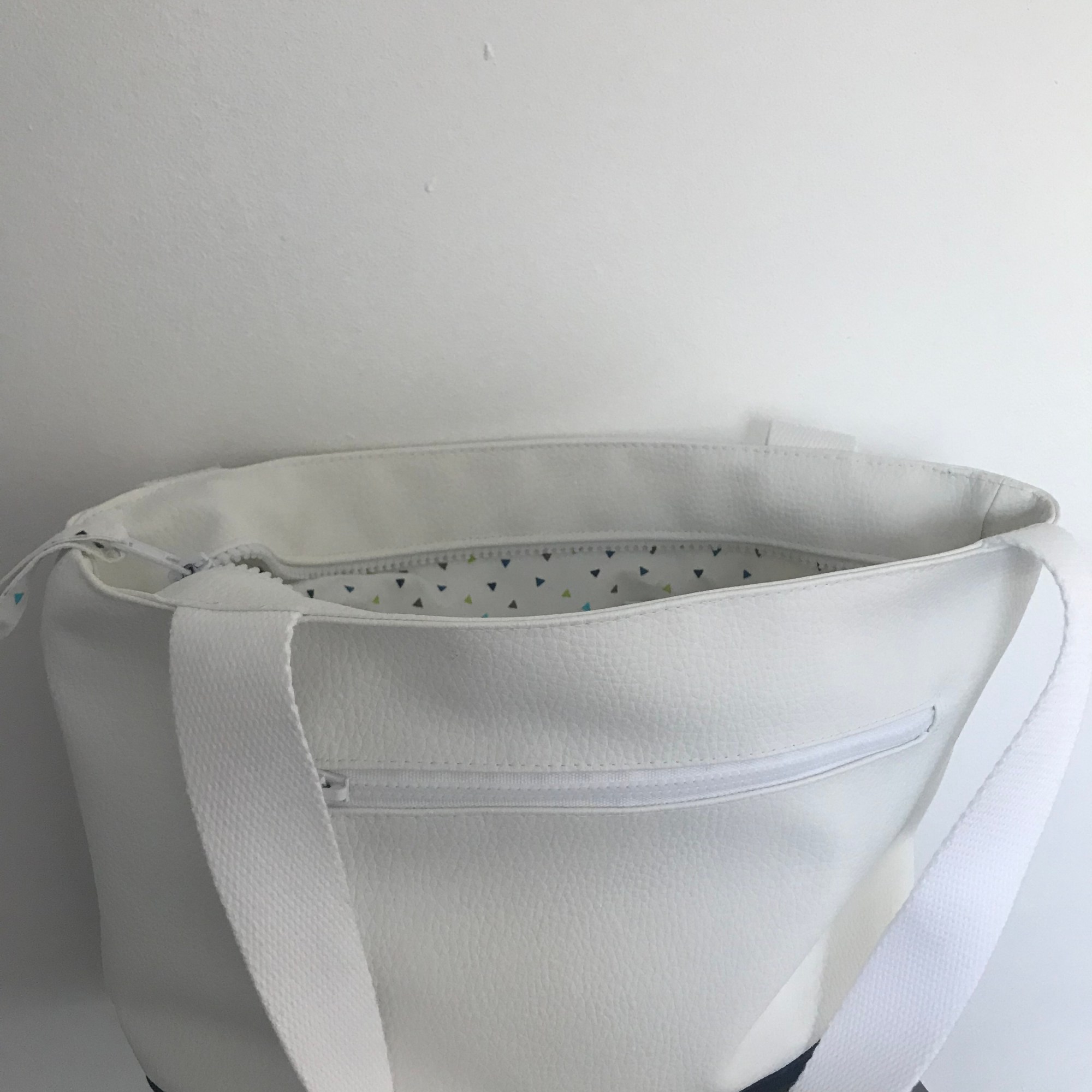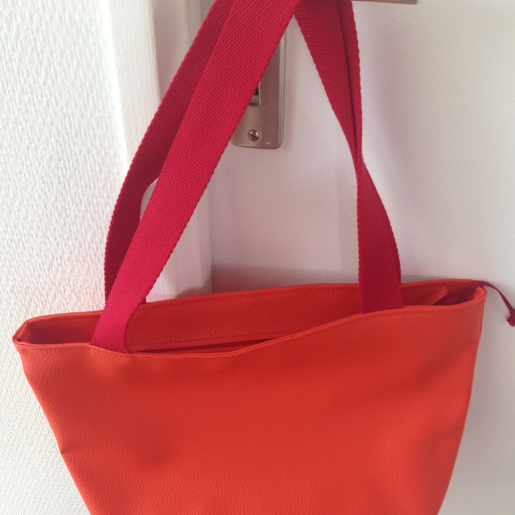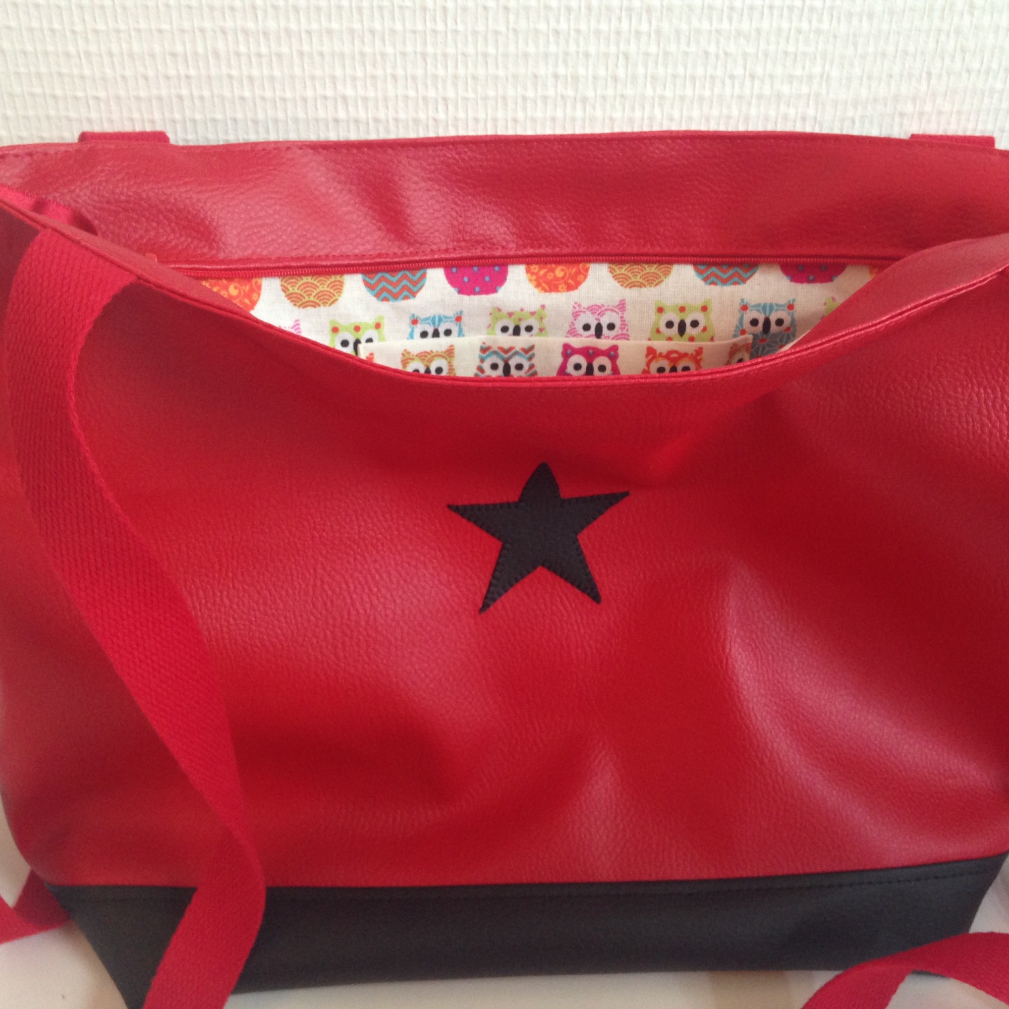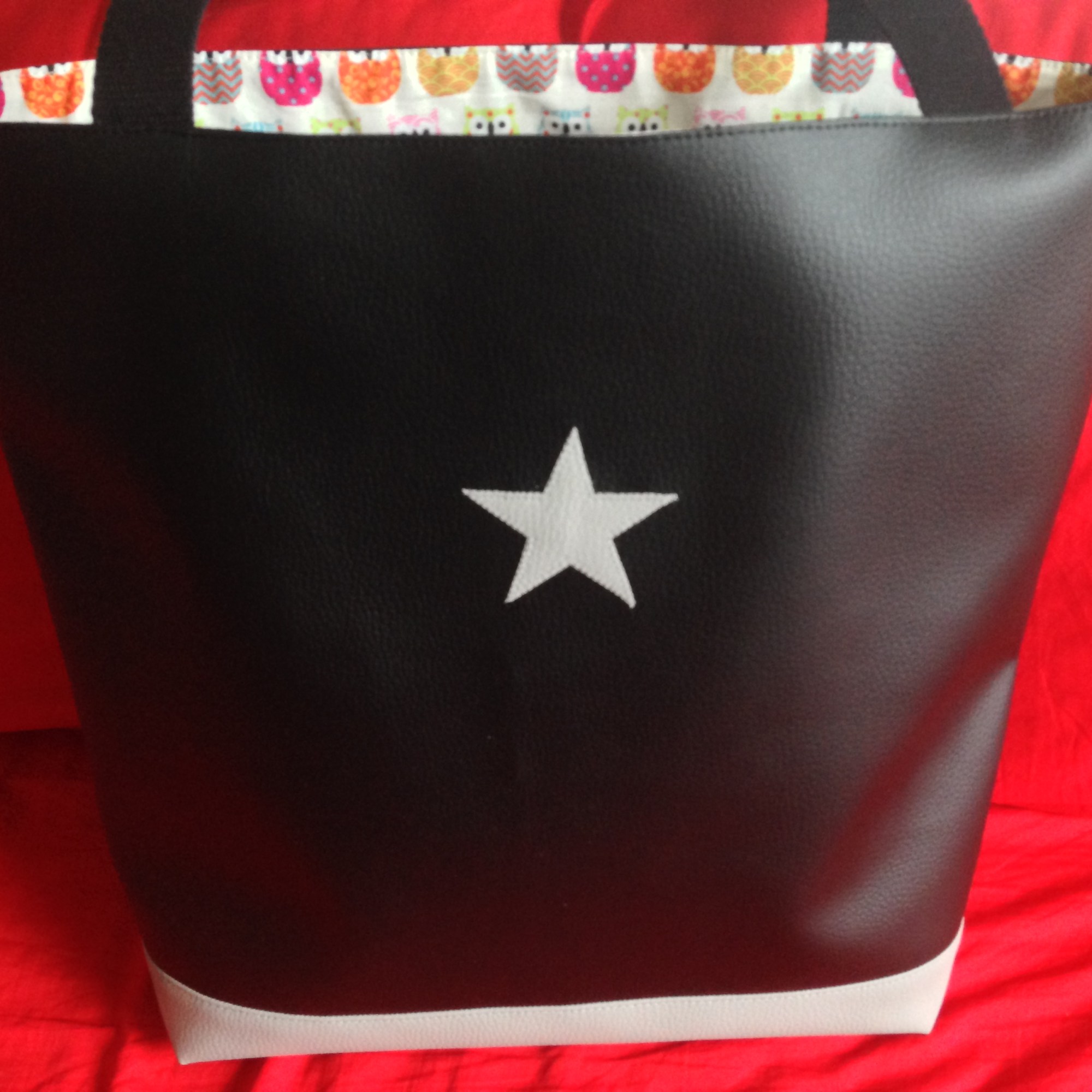 Sac en simili cuir, doublé de tissus.