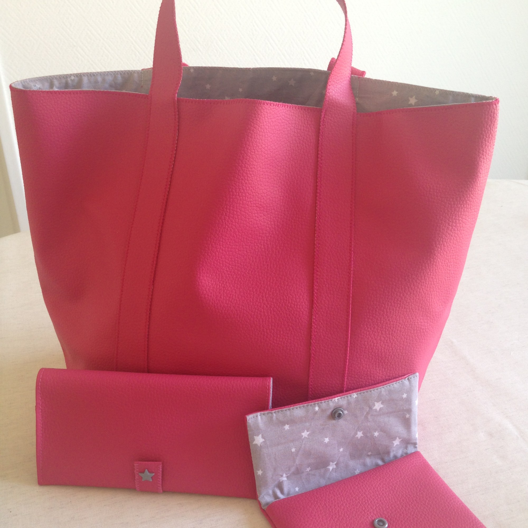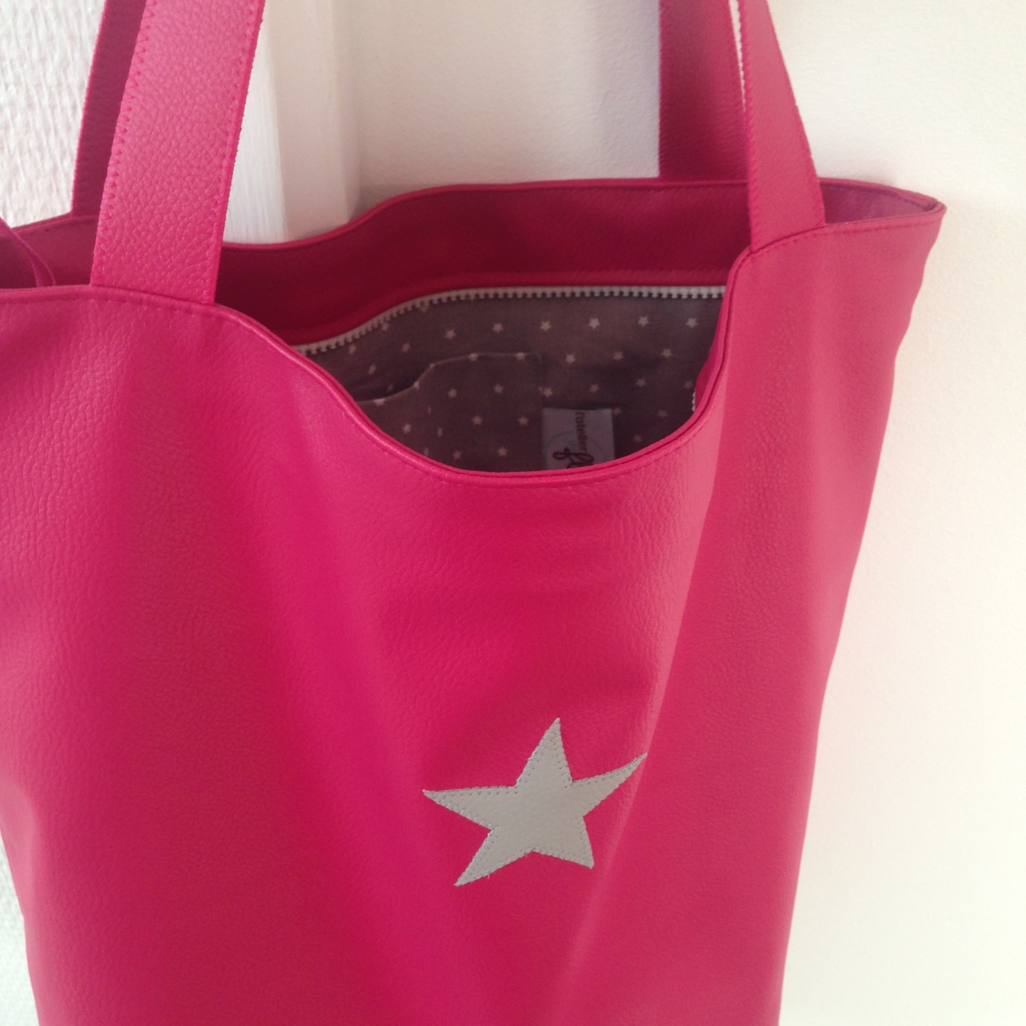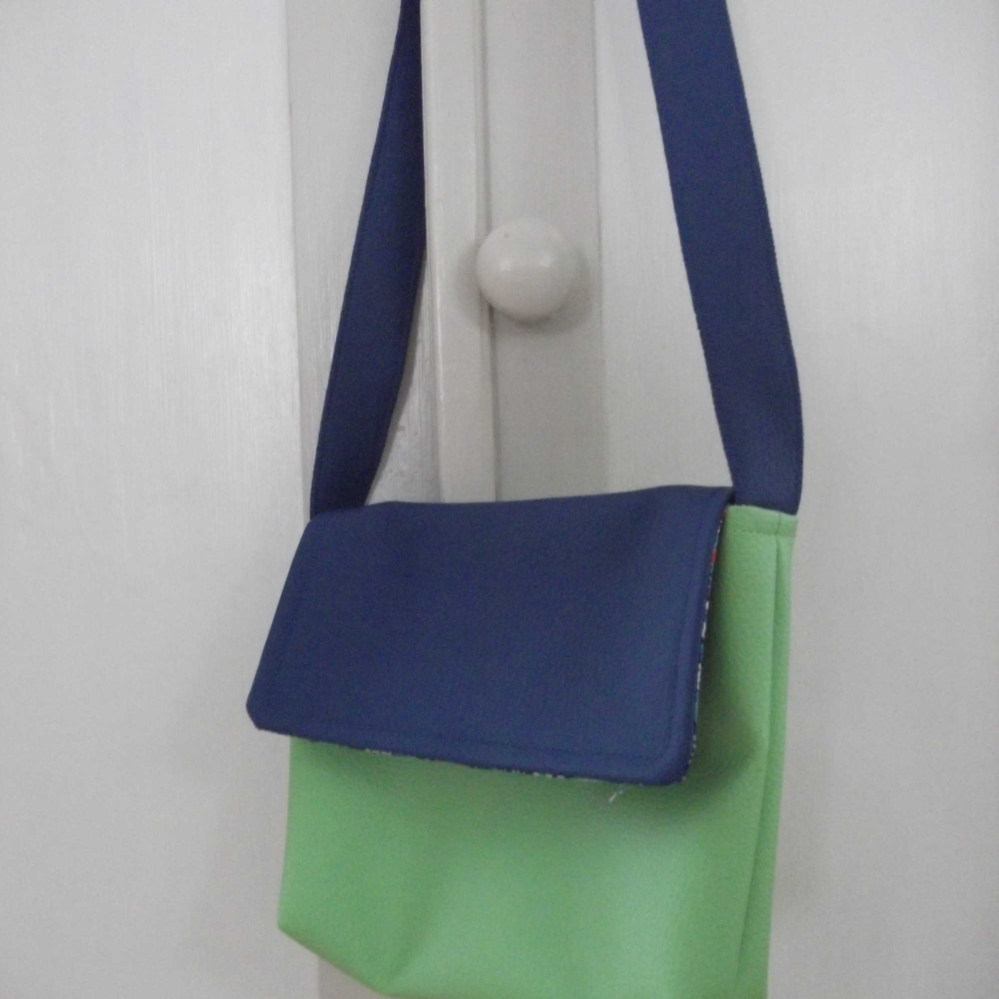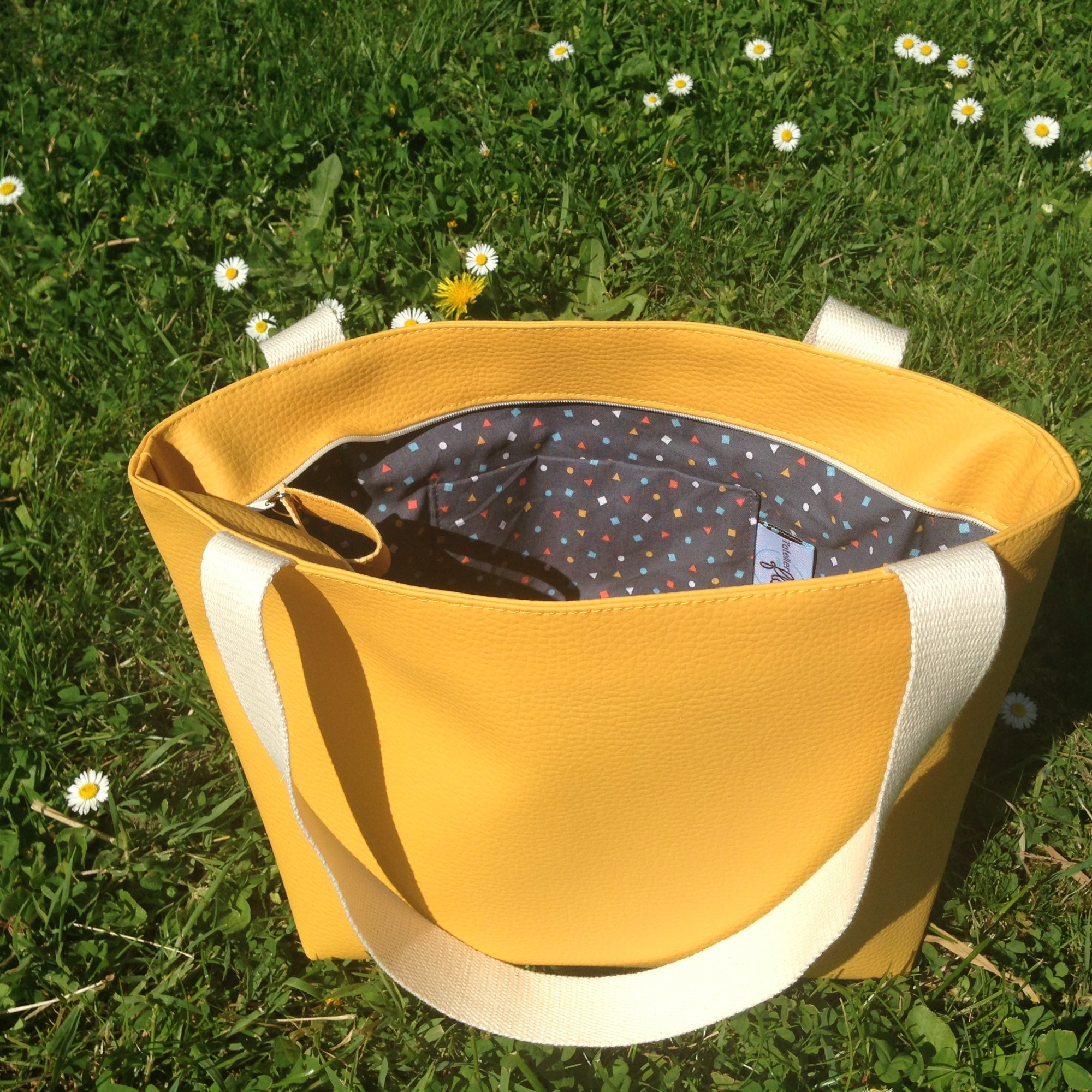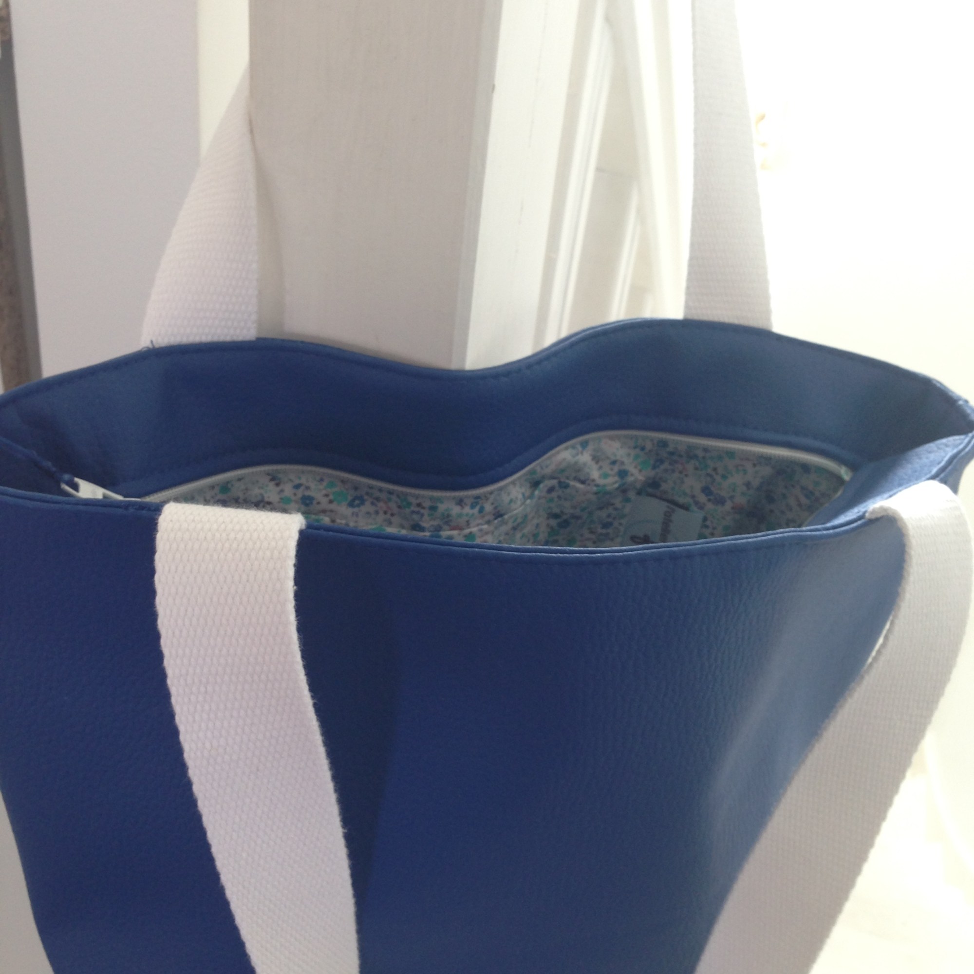 Sac en simili cuir, doublé de tissus.
