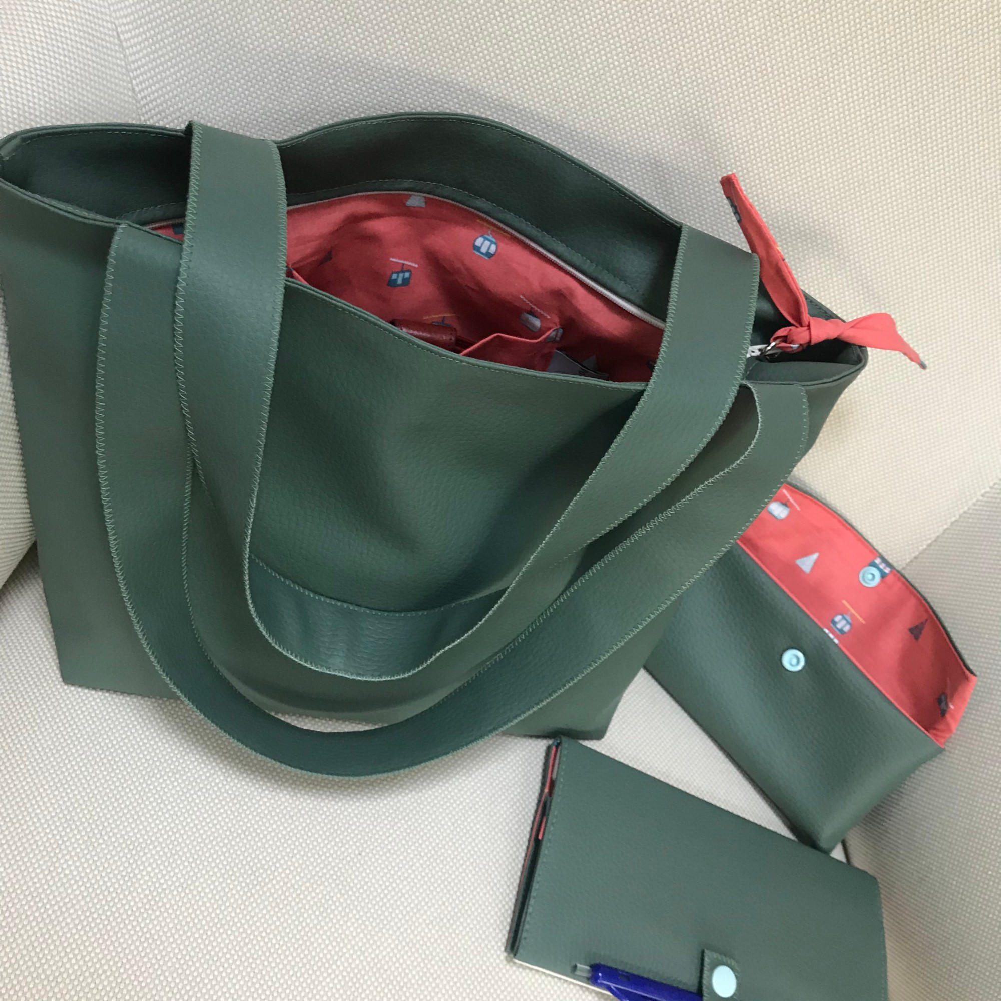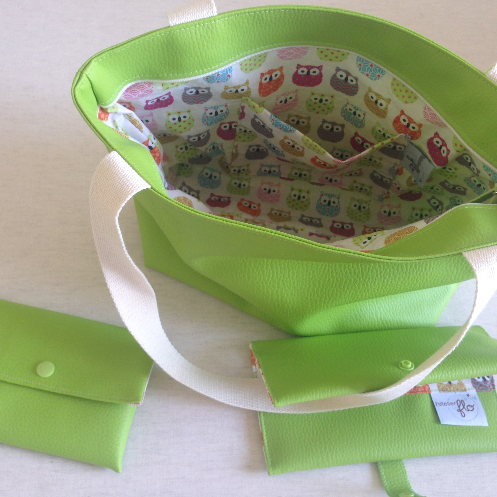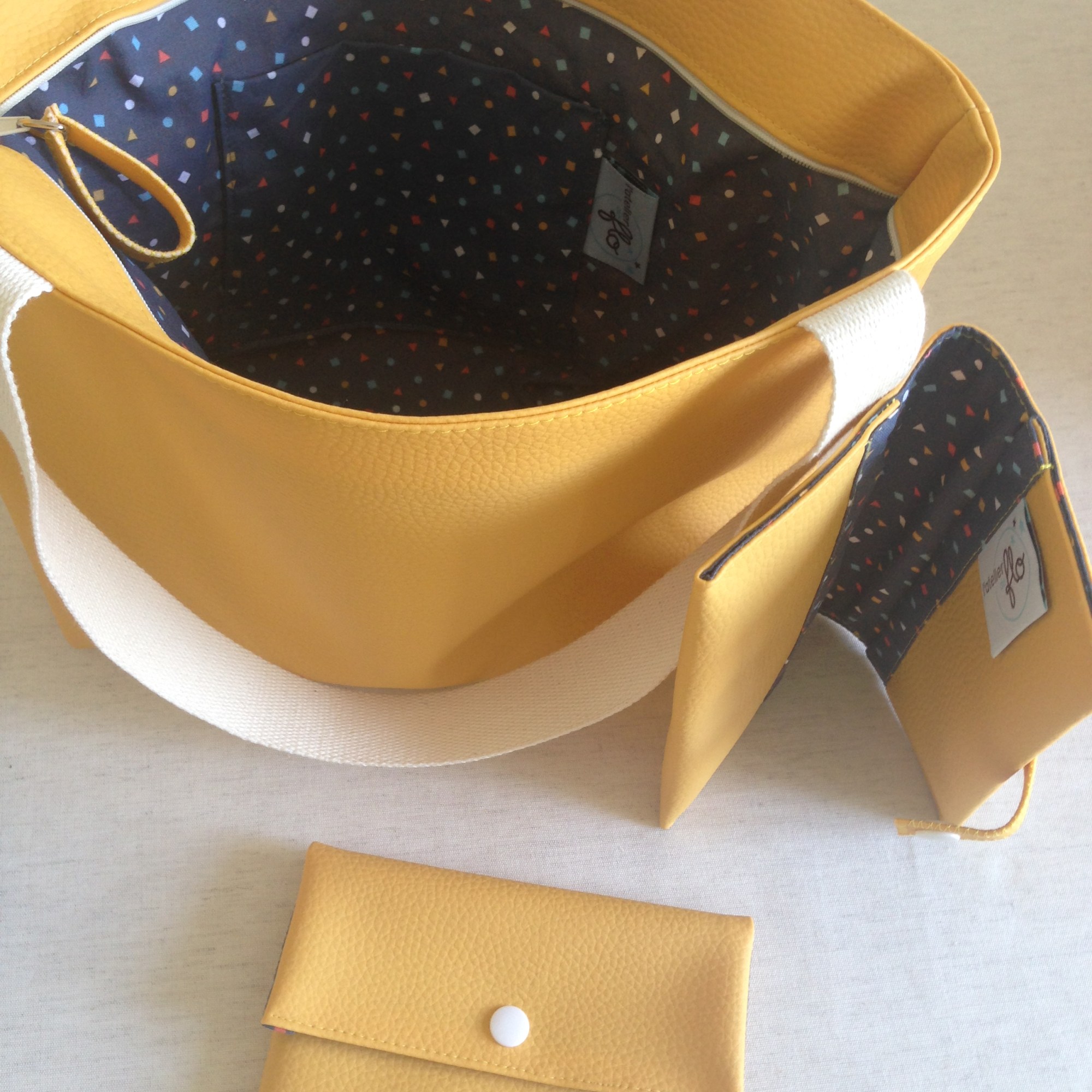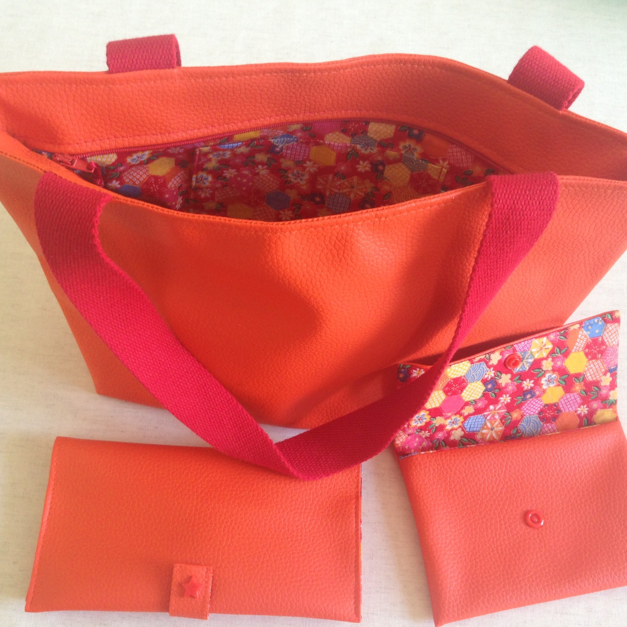 Sac en simili cuir, doublé de tissus.