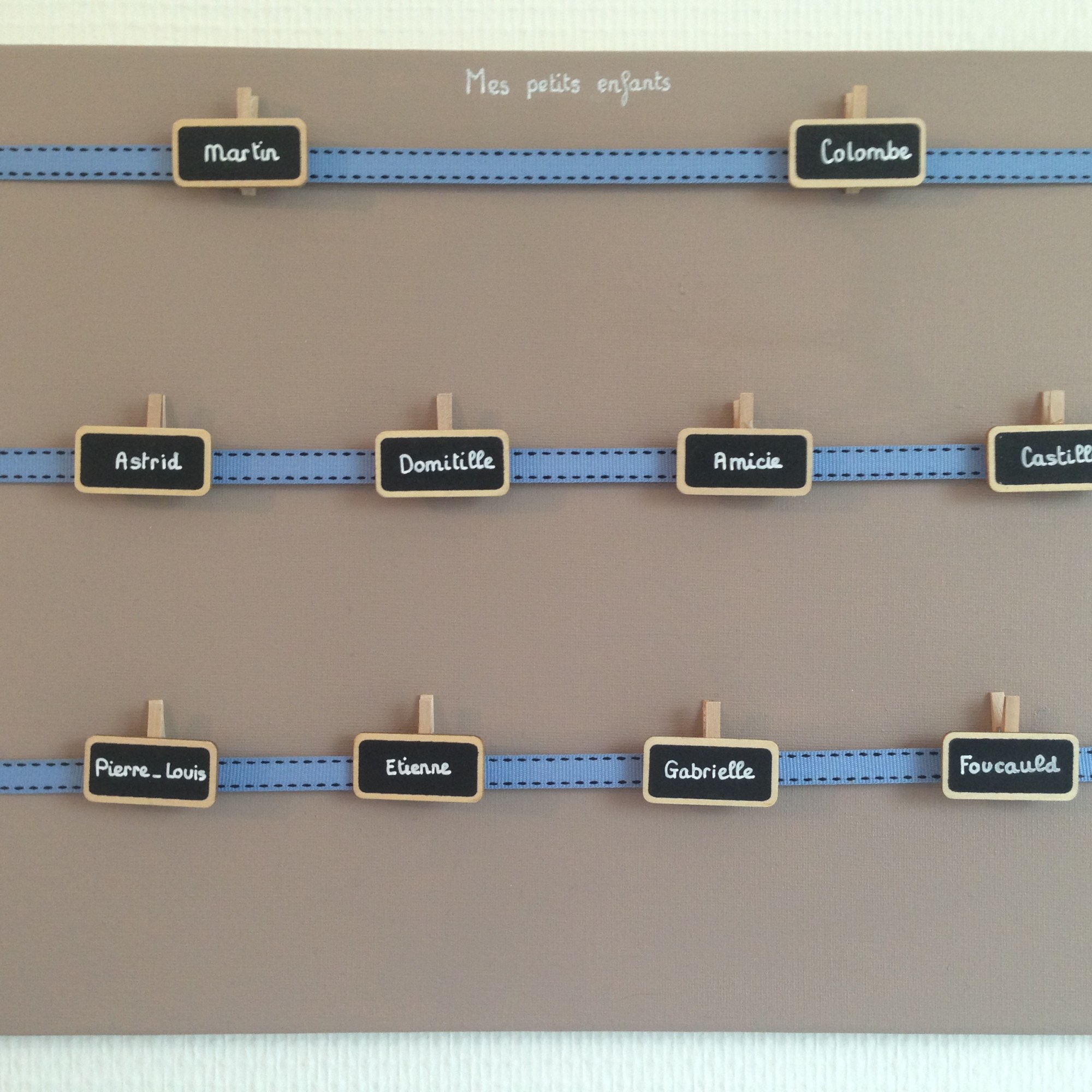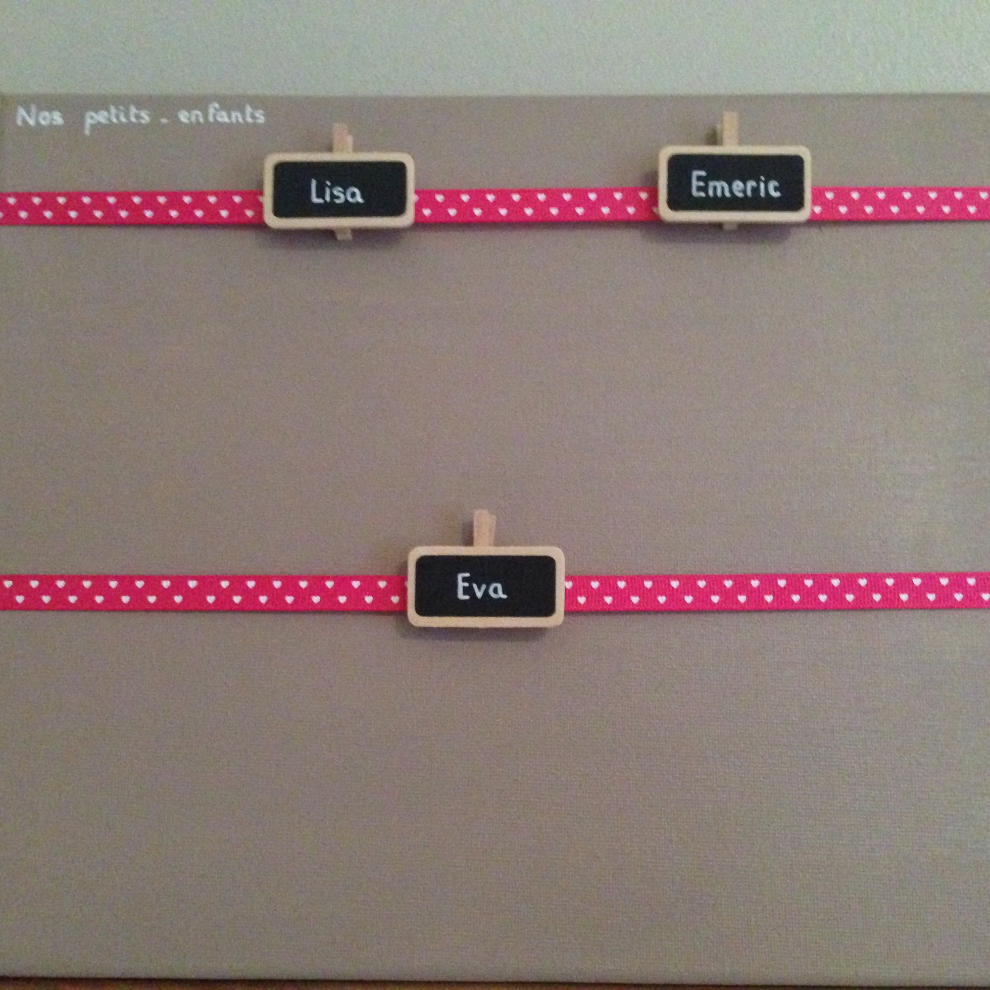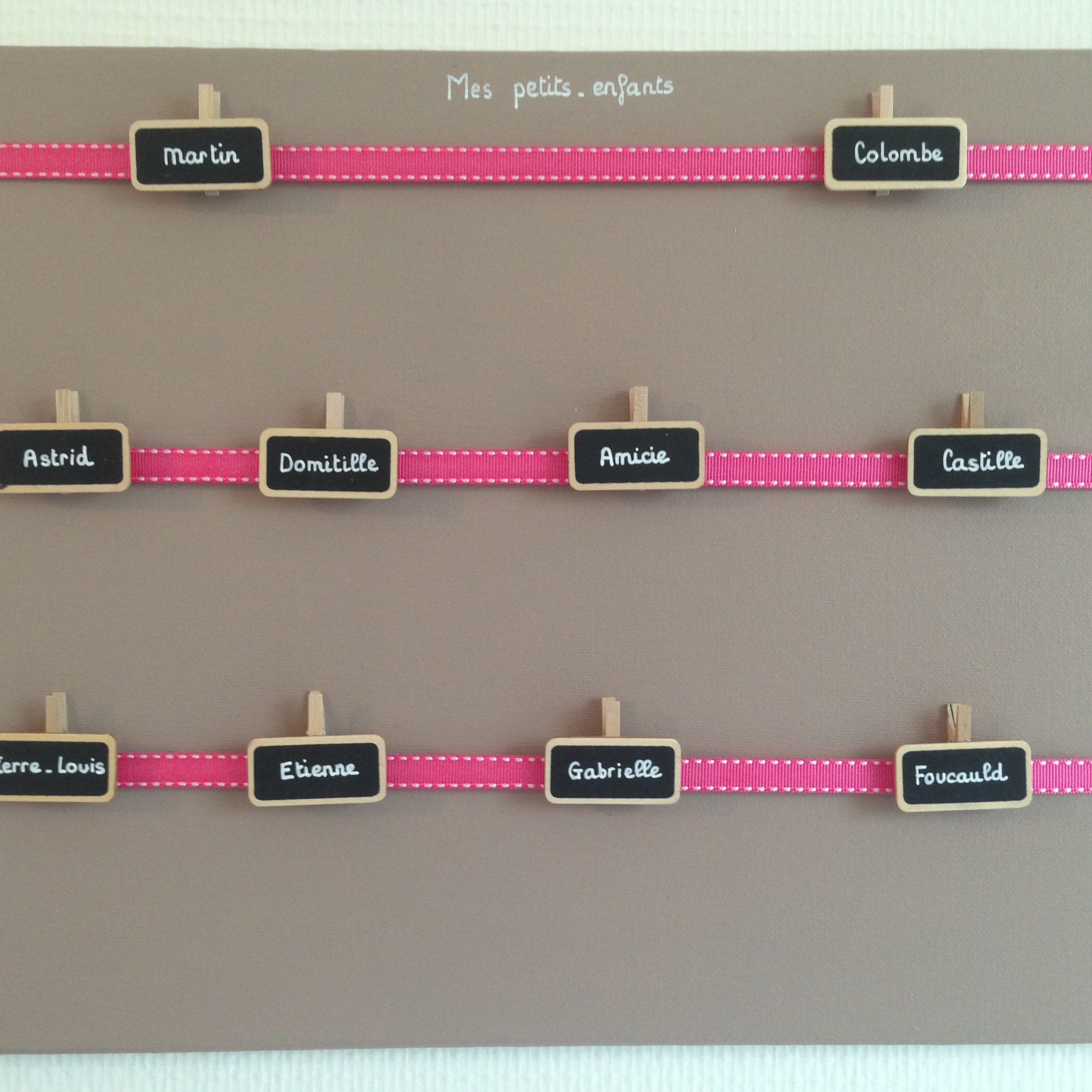 Vendu avec 3 petites pinces ardoise peintes aux prĂ©noms demandĂ©s (+0,5âŹ/pince supplĂ©mentaire)