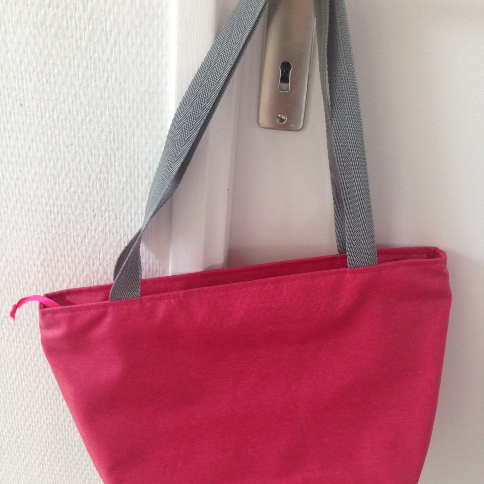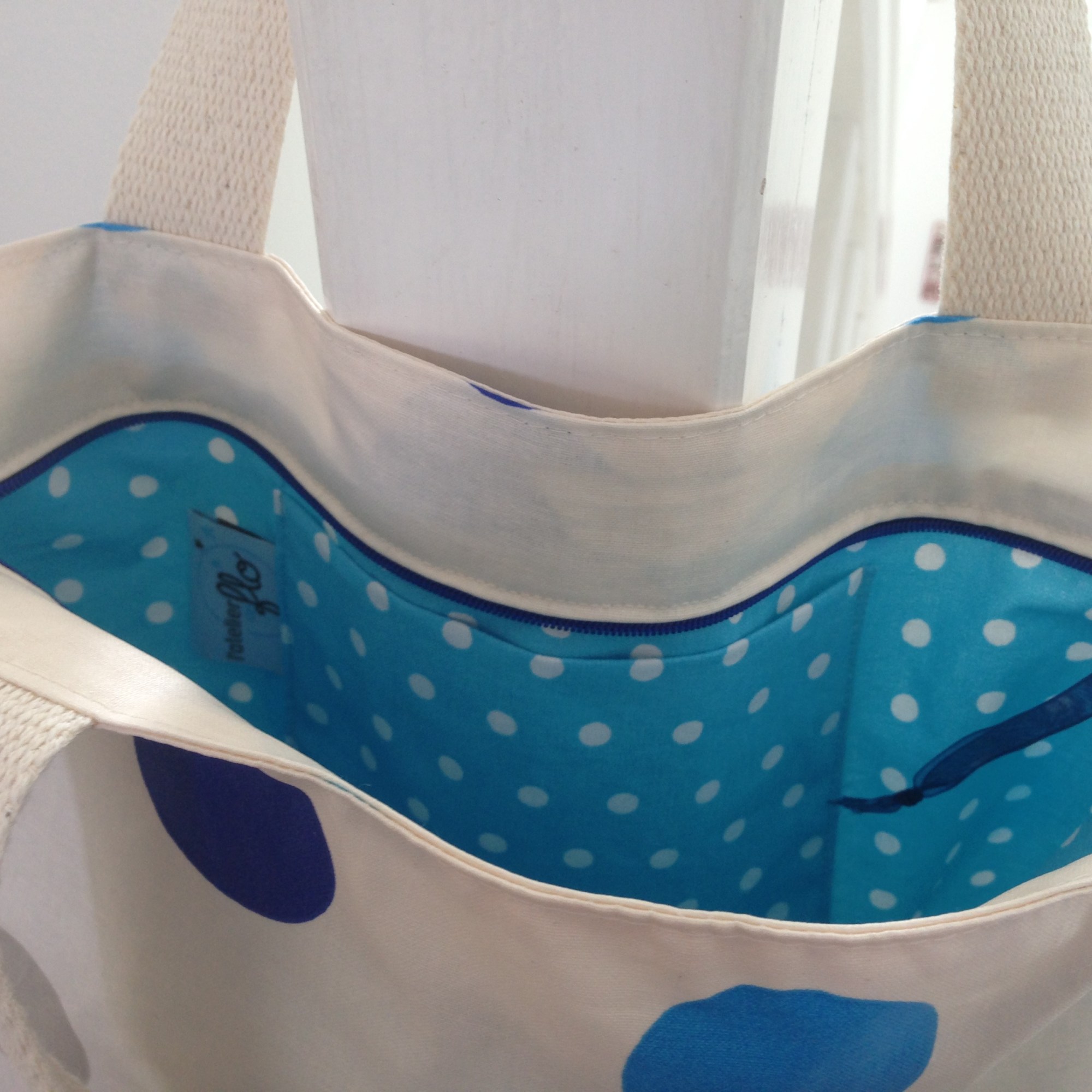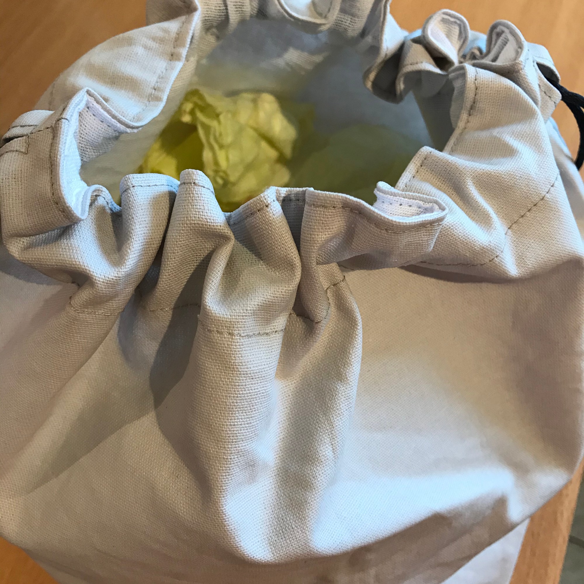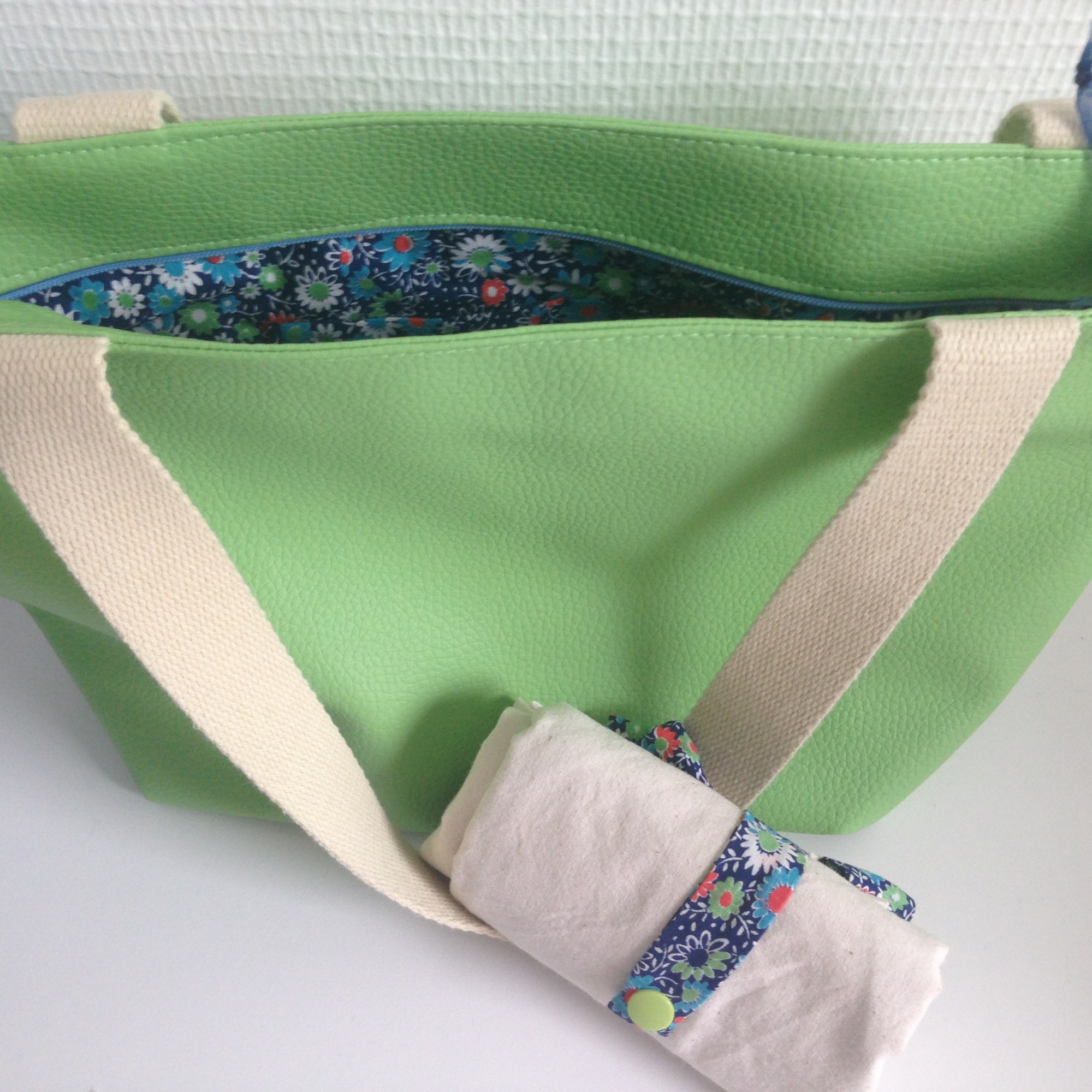 Extérieur en coton enduit, intérieur en toile à beurre.